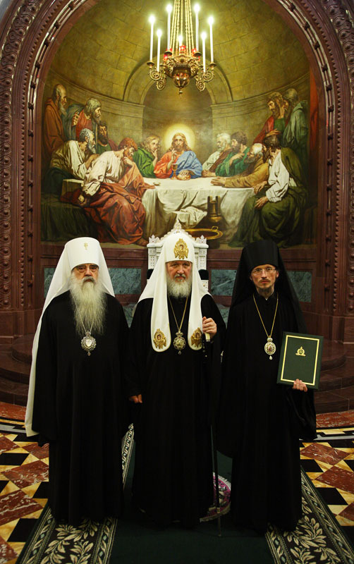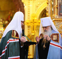 Митрополит Филарет обратился к Предстоятелю Русской Церкви и участникам богослужения с ответным словом. Патриарший Экзарх преподнес Его Святейшеству список чудотворной Жировицкой иконы Божией Матери.