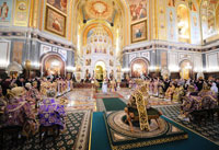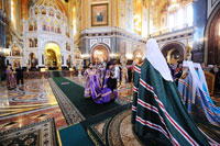 21 марта 2010 г. В неделю 5-ю Великого поста и в день памяти прп. Марии Египетской, Святейший Патриарх Московский и всея Руси Кирилл совершил Литургию свт.Василия Великого в кафедральном соборном Храме Христа Спасителя