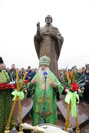 По окончании торжественного богослужения при многочисленном стечении молящихся Патриарший Экзарх освятил памятник Святителю Николаю Чудотворцу возле храма. Монумент был воздвигнут по благословению Митрополита Филарета, по инициативе и при поддержке благотворительного Фонда имени Святителя Николая Чудотворца (Россия) и создан российскими художниками Сергеем Исаковым и Ириной Макаровой.
