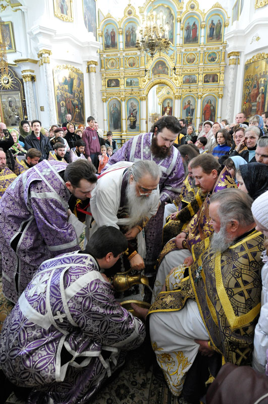После заамвонной молитвы Архиерей возглавил чин умовения ног, прообразом которого стали события Тайной Вечери, описанные в Евангелии от Иоанна (13: 1-21).