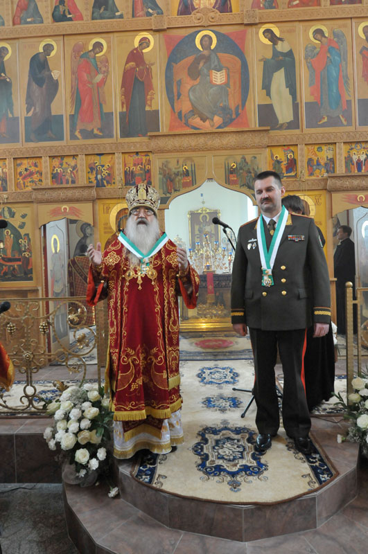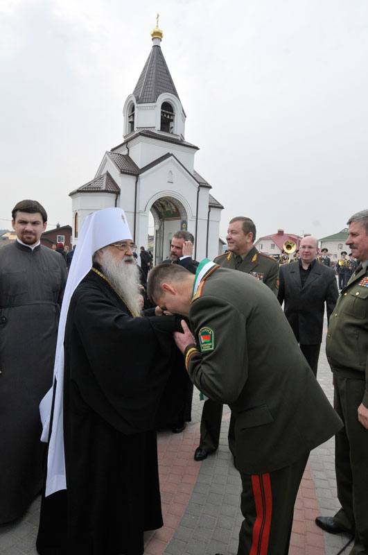 За значительный вклад в развитие сотрудничества Белорусской Православной Церкви с Министерством обороны Республики Беларусь Владыке Экзарху был вручен нагрудный знак святого Архистратига Божия Михаила, которого издревле почитают на Святой Руси как покровителя воинства. Также Владыка Митрополит принял поздравления по случаю праздника Пасхи и 75-летия со дня своего рождения от ряда представителей Вооруженных сил Республики Беларусь.