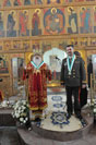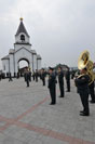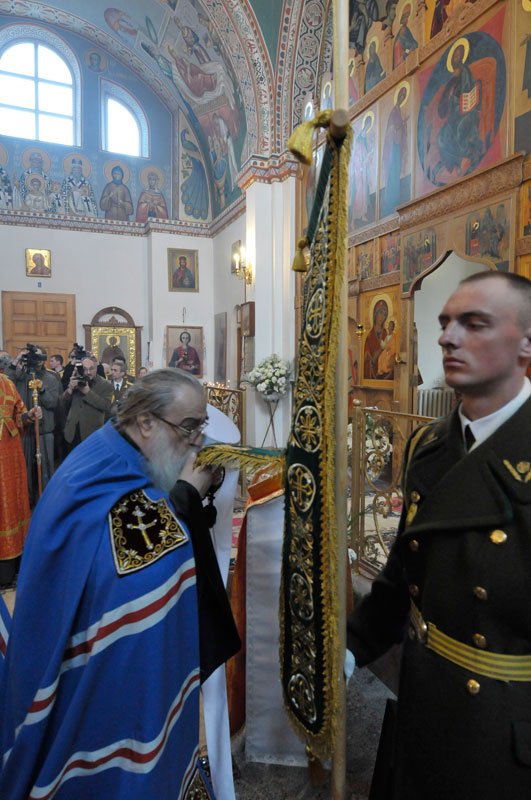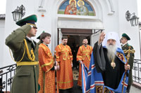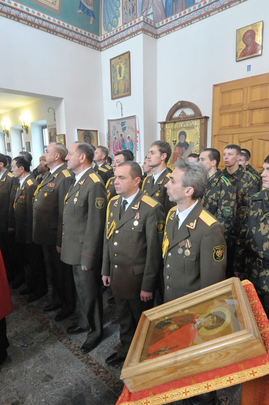 Его Высокопреосвященству сослужили Секретарь Минского Епархиального управления протоиерей Николай Коржич, настоятель прихода храма Рождества Пресвятой Богородицы, председатель отдела Белорусского Экзархата по взаимодействию с Вооруженными силами Республики Беларусь протоиерей Сергий Кузьменков, столичное духовенство. На богослужении присутствовали министр обороны Республики Беларусь генерал-лейтенант Ю.В. Жадобин, представители Министерства обороны, руководители различных государственных структур и ведомств.