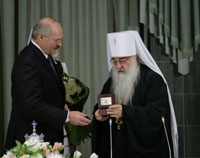 На торжественном заседании Синода Белорусской Православной Церкви, приуроченном к празднованию 75-летия Митрополита Минского и Слуцкого Филарета, Патриаршего Экзарха всея Беларуси, состоялось награждение Его Высокопреосвященства знаком высокого государственного внимания. Специальный лист об объявлении Благодарности Президента Республики Беларусь митрополиту Филарету вручил Глава белорусского государства Александр Григорьевич Лукашенко.