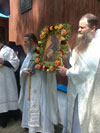 По окончании Литургии был совершен крестный ход вокруг церкви. В завершение богослужений епископ Вениамин поздравил присутствовавших с престольным праздником обители.