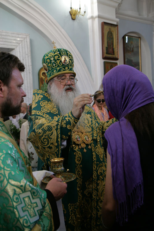По окончании богослужения Владыка Экзарх поздравил всех присутствующих с праздником Святой Живоначальной Троицы. «В этот благодатный день, когда мы вспоминаем Отца, Сына и Святого Духа, когда мы чтим Духа Святого, Который является сердцевиной жизни Святой Троицы, будем молиться, чтобы Святой Дух в этот день посетил нас, благословил и утвердил нас в вере и благочестии», — отметил в своем слове к молящимся Митрополит Филарет.