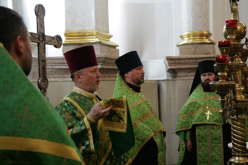 Его Высокопреосвященству сослужили настоятель собора благочинный Минского городского округа протоиерей Геннадий Дзичковский, Секретарь Минского Епархиального управления протоиерей Николай Коржич, соборное духовенство.