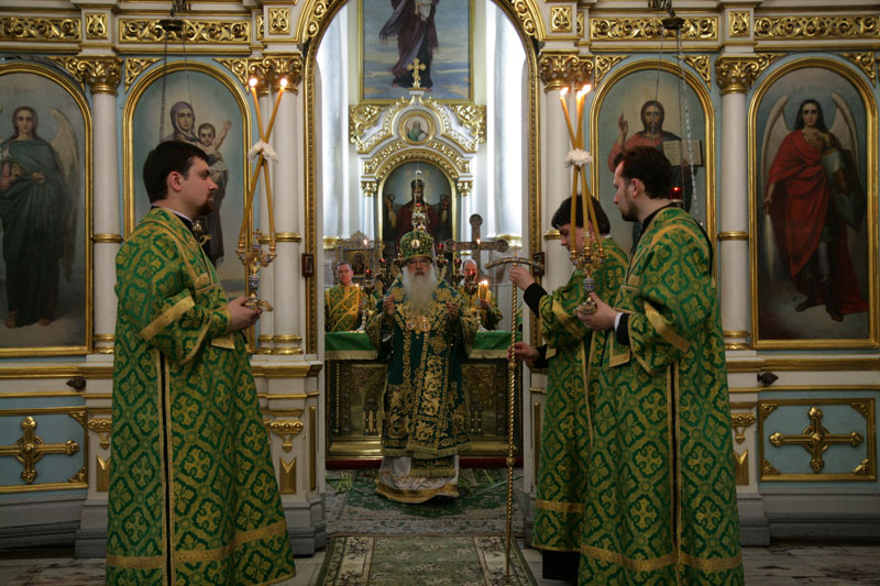 22 мая 2010 года. Митрополит Минский и Слуцкий Филарет, Патриарший Экзарх всея Беларуси в канун праздника Пятидесятницы возглавил всенощное бдение в Минском Свято-Духовом кафедральном соборе