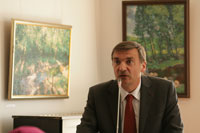 Далее собравшихся приветствовали: заместитель Уполномоченного по делам религий и национальностей Республики Беларусь В.Б. Ламеко; заместитель министра культуры РБ Т.И. Стружецкий; Чрезвычайный и Полномочный Посол Болгарии в РБ Захари Радуков; Чрезвычайный и Полномочный Посол Франции в РБ Мишель Ренери; ректор БГУКИ Б.В. Светлов. Советник посольства Российской Федерации в РБ С.В. Березный зачитал приветственное слово Чрезвычайного и Полномочного Посла РФ в РБ А.А. Сурикова. Приветственное слово Митрополита Минско-Могилевского Архиепископа Тадеуша Кондрусевича, представляющего сейчас Беларусь на пленарном заседании католического епископата Италии в Риме, было зачитано секретарем Конференции католических епископов Беларуси епископом Антонием Демьянко.