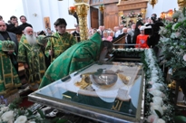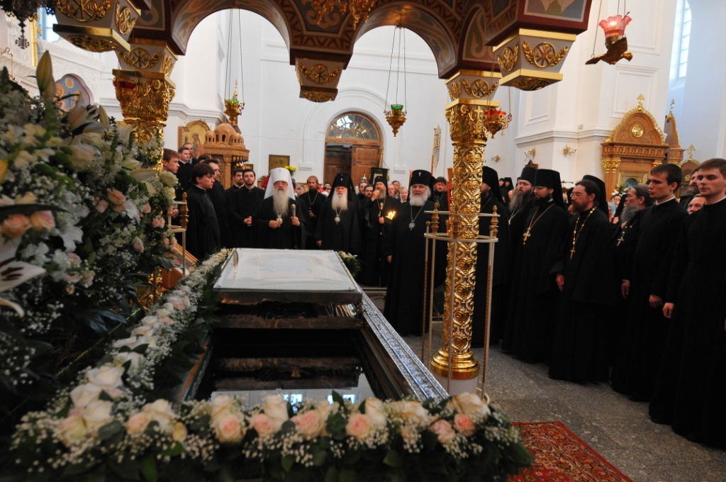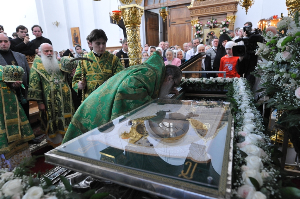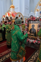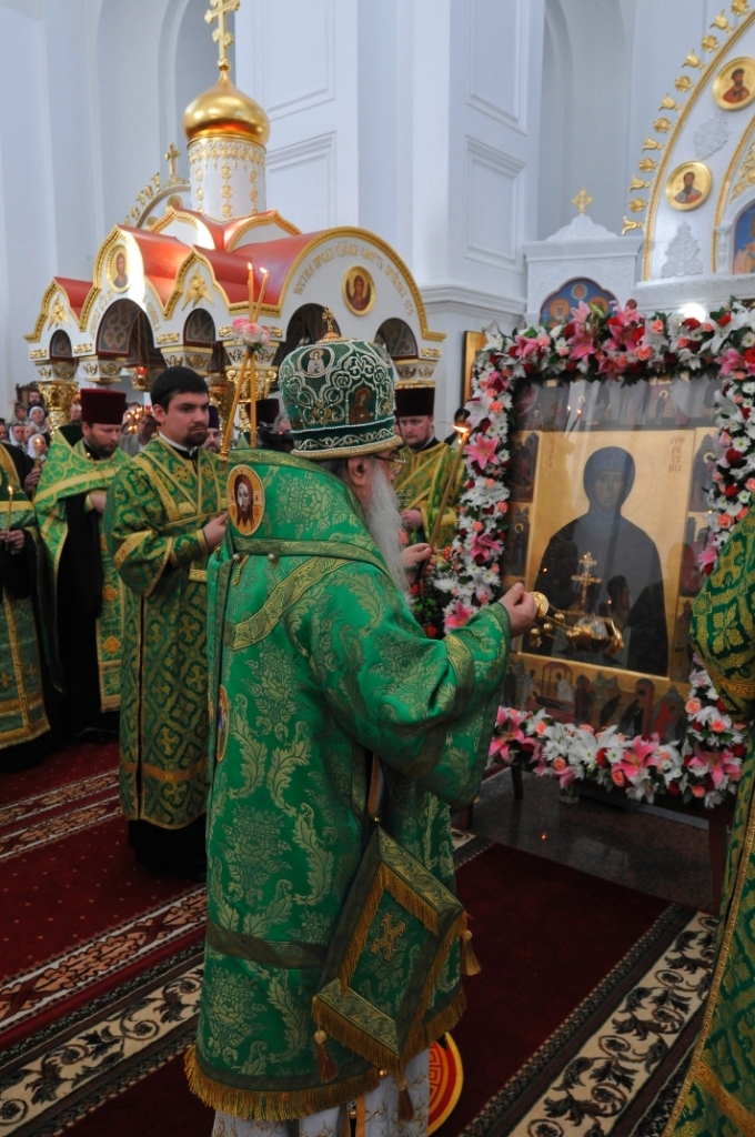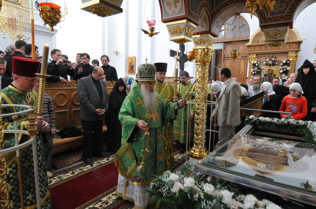 4 июня 2010 года. Его Высокопреосвященство Филарет, Митрополит Минский и Слуцкий, Патриарший Экзарх всея Беларуси возглавил всенощное бдение в Свято-Крестовоздвиженском соборе Спасо-Евфросиниевского Полоцкого женского монастыря по случаю празднования 100-летия перенесения мощей преподобной Евфросинии, игумении Полоцкой.