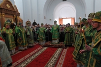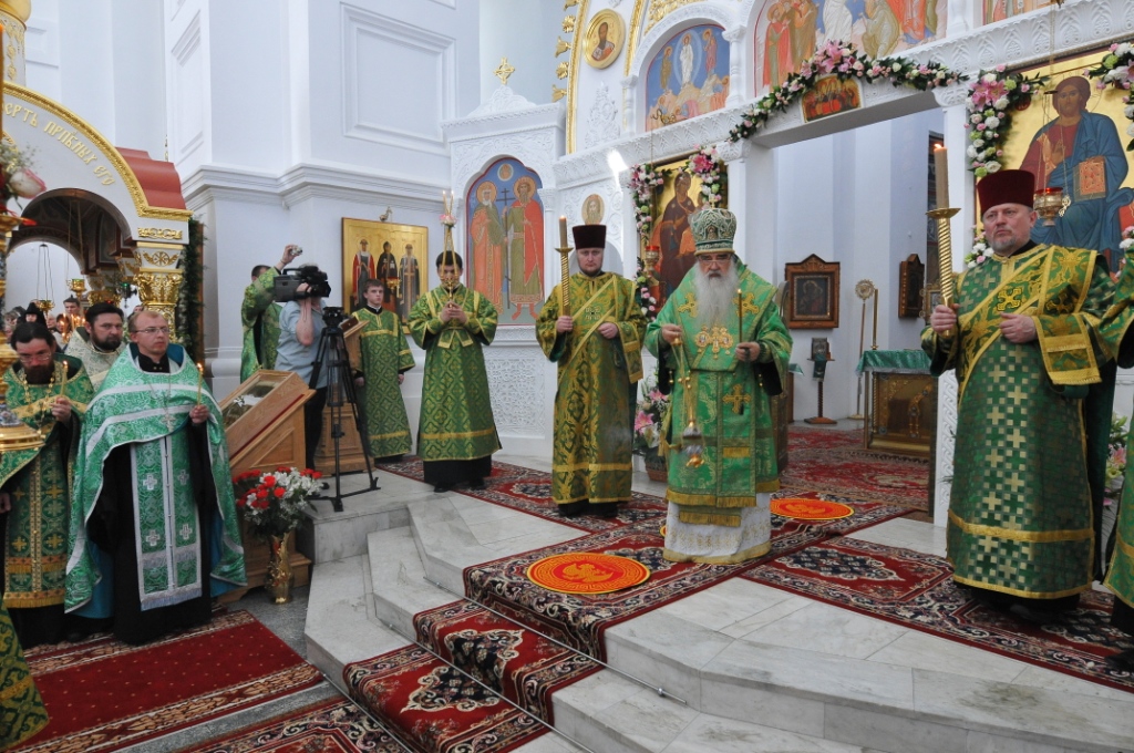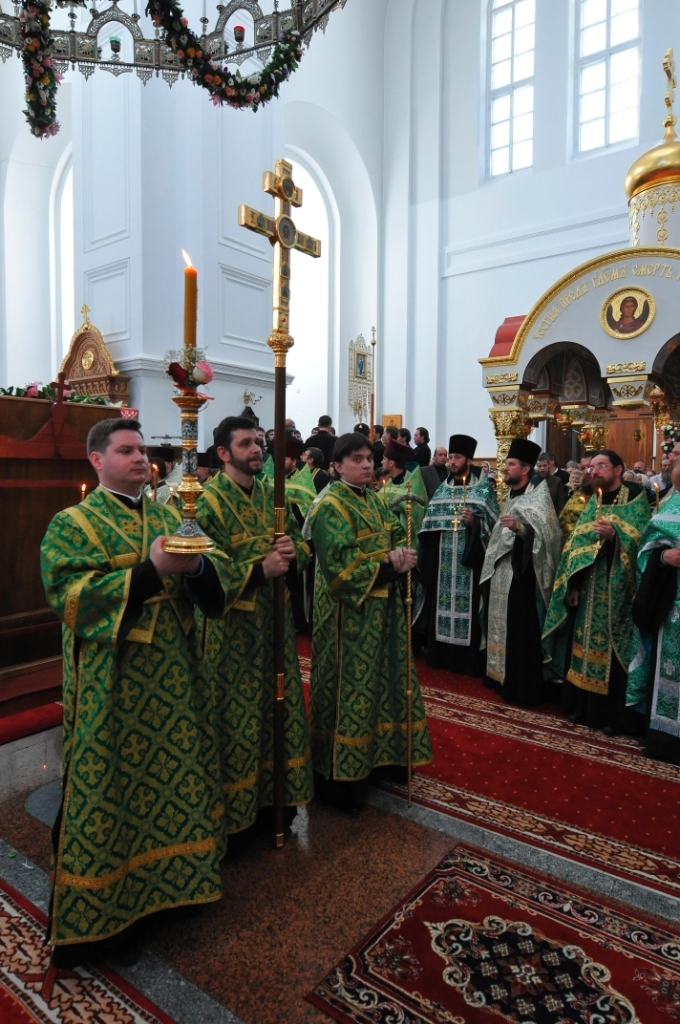 Патриаршему Экзарху сослужили архиепископ Истринский Арсений, викарий Московской епархии; архиепископ Черниговский и Новгород-Северский Амвросий, преосвященные архиереи Белорусской Православной Церкви, духовенство Полоцкой и других епархий Белорусского Экзархата.