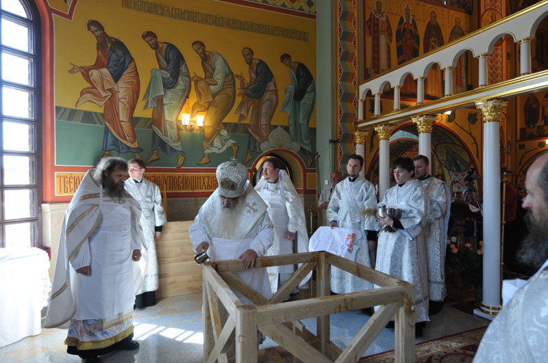 По окончании Божественной литургии Владыка Митрополит вручил ордена и медали Белорусской Православной Церкви, а также грамоты Патриаршего Экзарха особо потрудившимся в деле строительства Свято-Христорождественского храма.