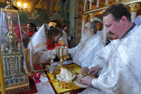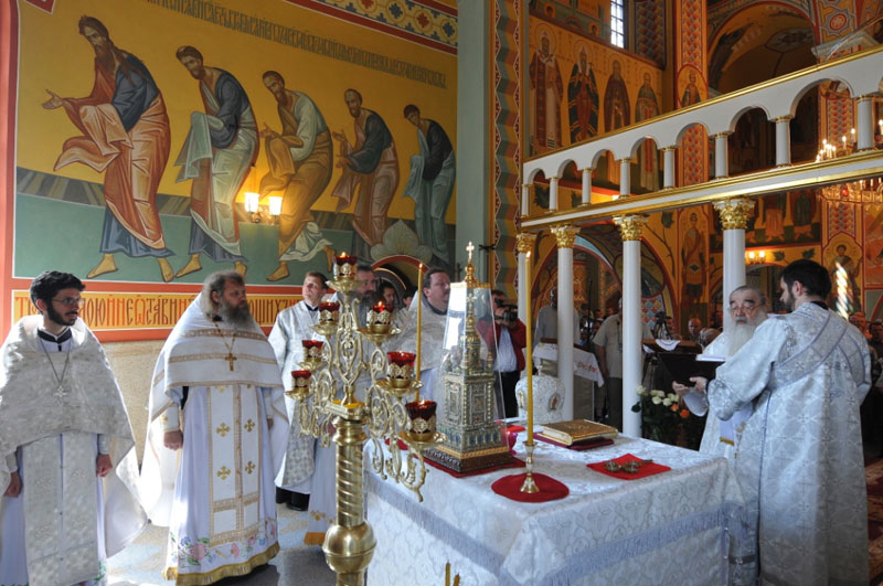 За богослужением настоятель храма иерей Михаил Рукаль был удостоен Владыкой Экзархом сана протоиерея и права ношения палицы. Иерей Сергий Маслов и иерей Сергий Мовсесян были награждены правом ношения золотого наперсного креста.