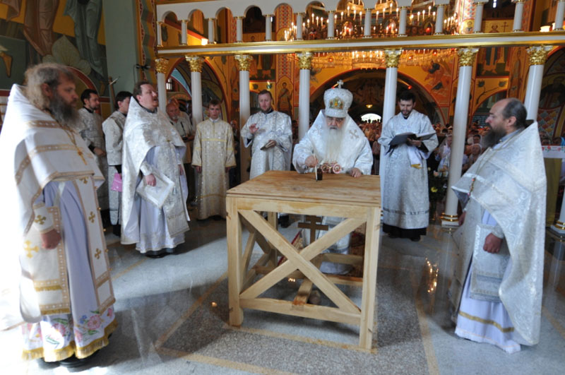 Его Высокопреосвященству сослужили Секретарь Минского Епархиального управления протоиерей Николай Коржич, благочинный Первого и Третьего Минского районного округа протоиерей Борис Пташинский, духовенство прихода и г. Минска.