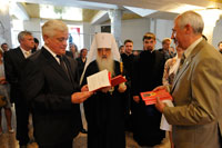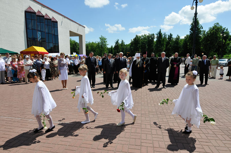 От лица государственной власти всех участников духовно-просветительской акции приветствовал председатель Минского областного исполнительного комитета Борис Батура, передав в дар Патриаршему Экзарху репринтное издание Елизаветинского Евангелия. Со словами поздравления ко всем присутствующим обратился также Уполномоченный по делам религий и национальностей