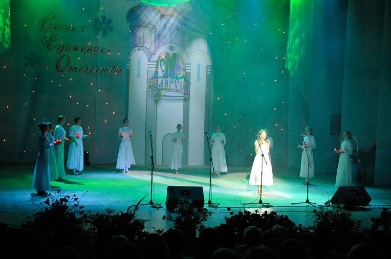 Торжественное собрание и праздничный концерт предварял короткометражный фильм, рассказывающий об основных этапах проведения акции «Семья – Единение – Отечество». В концерте приняли участие различные выдающиеся творческие коллективы Молодеченского района и Минской области.