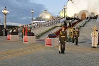 каждой из 4-х несущих опор, стояли воспитанники Суворовского военного