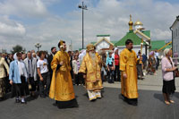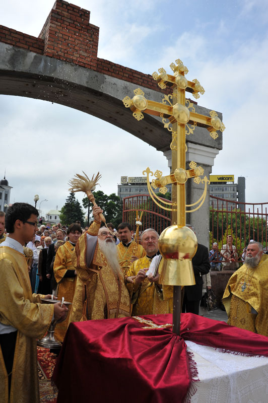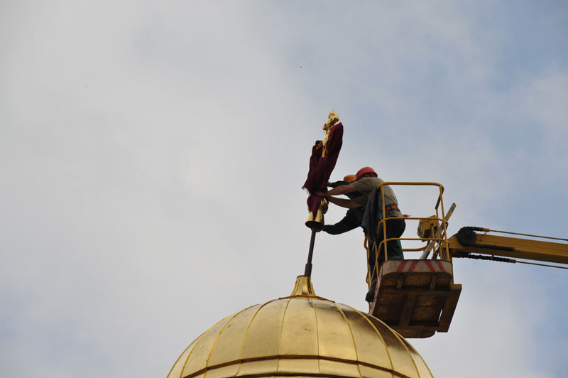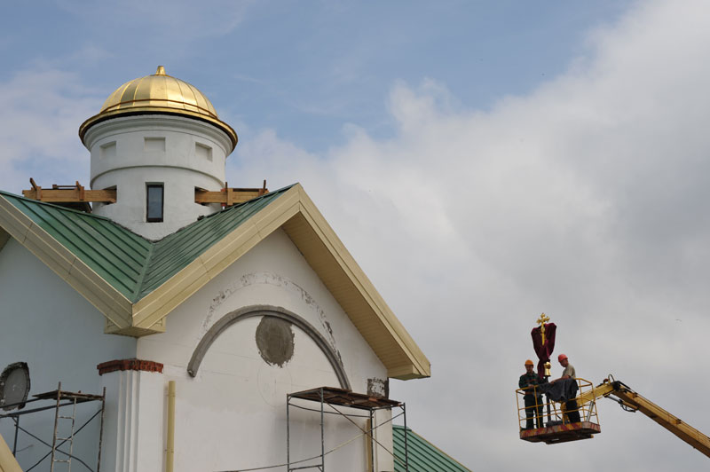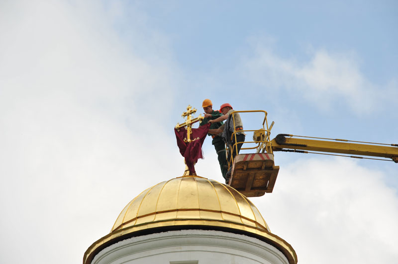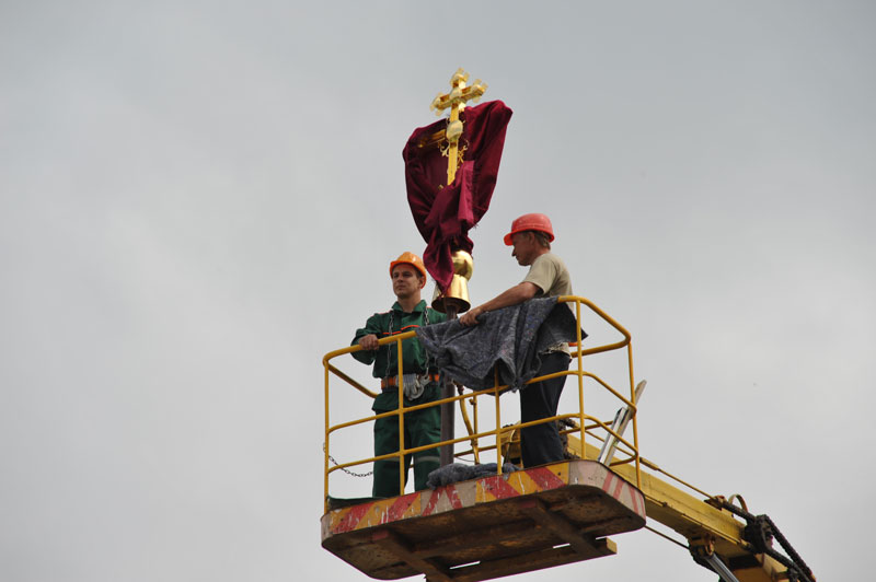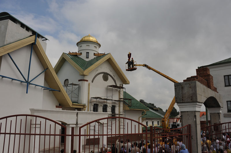 4 июля 2010 года. Освящение и установка креста на купол храмовой части Духовно-образовательного центра Белорусской Православной Церкви 4 июля 2010 года