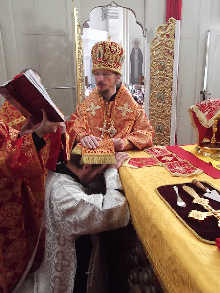 Литургию и хиратонии в праздник Усекновения главы Иоанна Предтечи совершает Викарий Минской епархии епископ Борисовский Вениамин. Свято-Благовещенский монастырь д.Большие Ляды (Минская обл.). 11 сентября 2011 г.