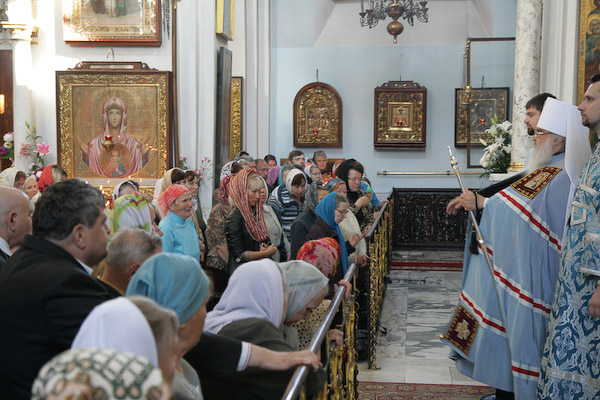 Божественную литургию в праздник Рождества Пресвятой Богородицы в Свято-Духовом кафедральном соборе г. Минска возглавляет Высокопреосвященнейший Митрополит Филарет. 21 сентября 2011 г.