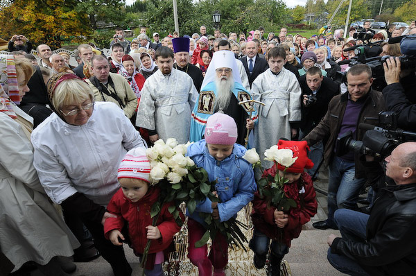 Митрополит Минский и Слуцкий Филарет совершил Божественную литургию с чином освящения храма в честь святой великомученицы Анастасии Узорешительницы в поселке Бычиха Городокского района Витебской области. 25 сентября 2011 г.