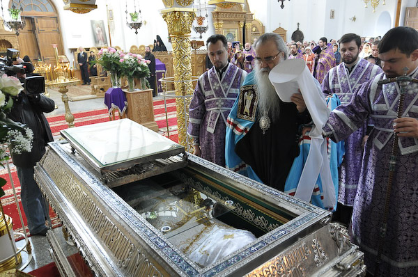 Митрополит Минский и Слуцкий Филарет возглавил Божественную литургию в Крестовоздвиженском соборе Полоцкого Спасо-Евфросиниевского женского монастыря. 27 сентября 2011 г.