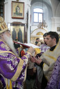 Божественную литургию, диаконскую и иерейскую хиратонии в Свято-Духовом кафедральном соборе г. Минска совершил Высокопреосвященнейший Митрополит Филарет. 2 октября 2011 г.