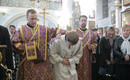 Божественную литургию, диаконскую и иерейскую хиратонии в Свято-Духовом кафедральном соборе г. Минска совершил Высокопреосвященнейший Митрополит Филарет. 2 октября 2011 г.