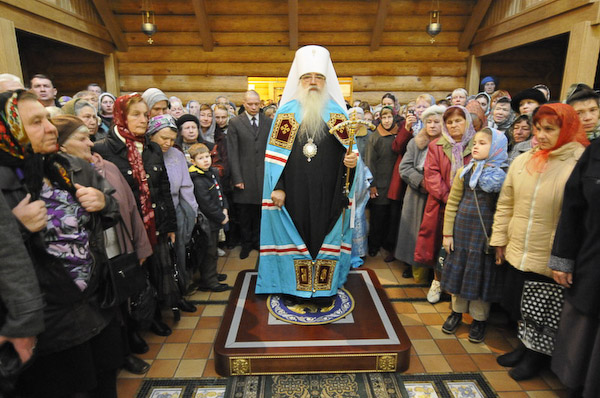 В праздник Покрова Пресвятой Богородицы Митрополит Минский и Слуцкий Филарет возглавил Божественную литургию в Свято-Троицком храме Всехсвятского прихода г. Минска. 14 октября 2011 г.