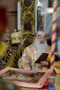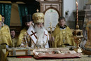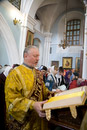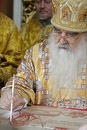 Божественную литургию, диаконскую и иерейскую хиратонии, освящение антиминсов совершает Высокопреосвященнейший Митрополит Филарет. Свято-Духов кафедральный собор г. Минска. 16 октября 2011 года