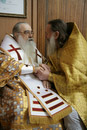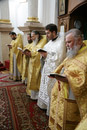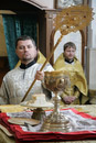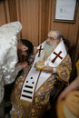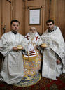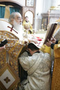 Божественную литургию, диаконскую и иерейскую хиратонии, освящение антиминсов совершает Высокопреосвященнейший Митрополит Филарет. Свято-Духов кафедральный собор г. Минска. 16 октября 2011 года