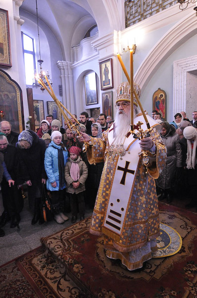 В неделю 29-ю по Пятидесятнице, пред Рождеством Христовым, Митрополит Минский и Слуцкий Филарет возглавил Божественную литургию в Свято-Духовом кафедральном соборе г. Минска. 1 января 2012 года.