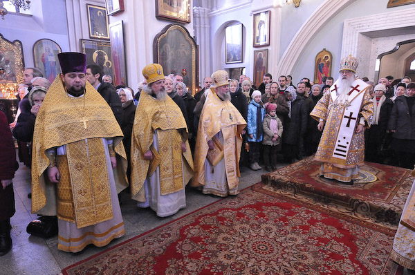 В неделю 29-ю по Пятидесятнице, пред Рождеством Христовым, Митрополит Минский и Слуцкий Филарет возглавил Божественную литургию в Свято-Духовом кафедральном соборе г. Минска. 1 января 2012 года.