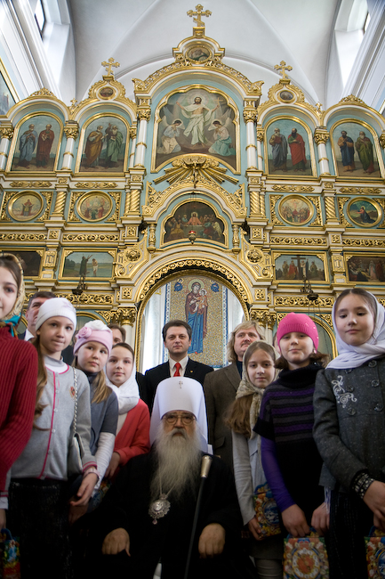 Высокопреосвященнейший Митрополит Филарет поздравил с праздником Рождества Христова детей из регионов, пострадавших от последствий аварии на Чернобыльской АЭС. 8 января 2012 г.