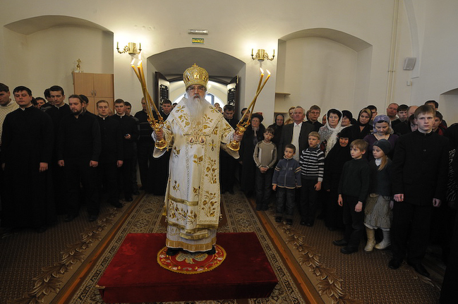 Митрополит Минский и Слуцкий Филарет в день Собора вселенских учителей и святителей Василия Великого, Григория Богослова и Иоанна Златоустого возглавил Божественную литургию и Торжественный акт в Минских духовных академии и семинарии. 12 февраля 2012 г.
