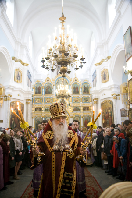 Неделя 3-я Великого поста, Крестопоклонная. Высокопреосвященнейший Митрополит Филарет совершил Божественную литургию в Свято-Духовом кафедральном соборе г. Минска . 18 марта 2012 года