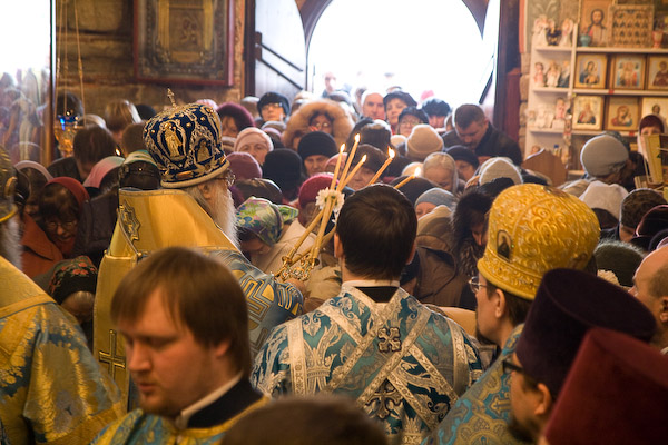 В праздник Благовещения Пресвятой Богородицы Митрополит Минский и Слуцкий Филарет возглавил Литургию в одноименном храме г. Витебска. 7 апреля 2012 г.