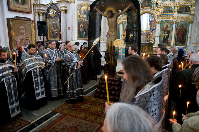 Утреня с чтением 12 Евангелий Святых Страстей Господних в канун Великой пятницы. Минский Свято-Духов кафедральный собор. 12 апреля 2012 года