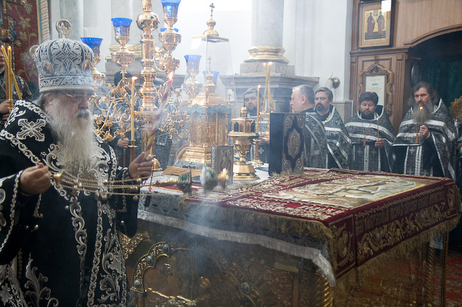 Великая пятница. Митрополит Филарет совершил вечерню с выносом Плащаницы Спасителя. Свято-Духов кафедральный собор. 13 апреля 2012 года