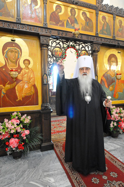 В четверг Светлой седмицы Высокопреосвященнейший Митрополит Филарет возглавил Божественную литургию на приходе в честь иконы Божией Матери "Всех скорбящих радость". 19 апреля 2012 года