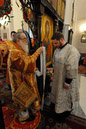 В четверг Светлой седмицы Высокопреосвященнейший Митрополит Филарет возглавил Божественную литургию на приходе в честь иконы Божией Матери "Всех скорбящих радость". 19 апреля 2012 года