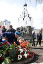 Церемония возложения венков к памятным знакам «Ахвяры Чарнобыля» и «Камень мира Хиросимы» у минского храма в честь иконы Божией Матери «Взыскание погибших». 26 апреля 2012 года