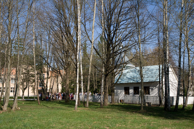 Литургия в храме в честь иконы Пресвятой Богородицы «Утоли моя печали» на территории онкологического центра в п. Боровляны. 28 апреля 2012 года