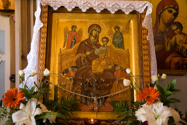 Литургия в храме в честь иконы Пресвятой Богородицы «Утоли моя печали» на территории онкологического центра в п. Боровляны. 28 апреля 2012 года