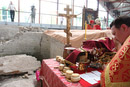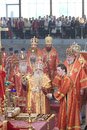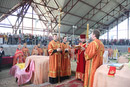 Божественная литургия на древнем замчище г.Турова Гомельской области, краткий молебен у памятника святителю Кириллу Туровскому и закладка краеугольного камня в основание строящейся колокольни кафедрального собора в честь святых Кирилла и Лаврентия Туровских. 11 мая 2012 года