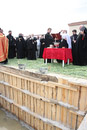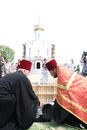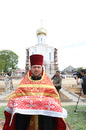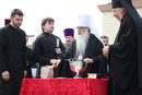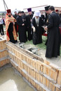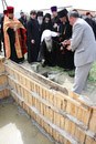 Божественная литургия на древнем замчище г.Турова Гомельской области, краткий молебен у памятника святителю Кириллу Туровскому и закладка краеугольного камня в основание строящейся колокольни кафедрального собора в честь святых Кирилла и Лаврентия Туровских. 11 мая 2012 года