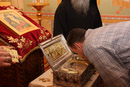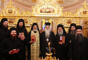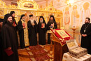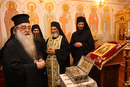 Посещение делегации афонских монахов с ковчегом с частицами Честного и Животворящего Креста Господня, мощей равноапостольной Марии Магдалины и великомученицы Варвары Минского Епархиального управления в завершении пребывания святынь в Беларуси. 12 мая 2012 года