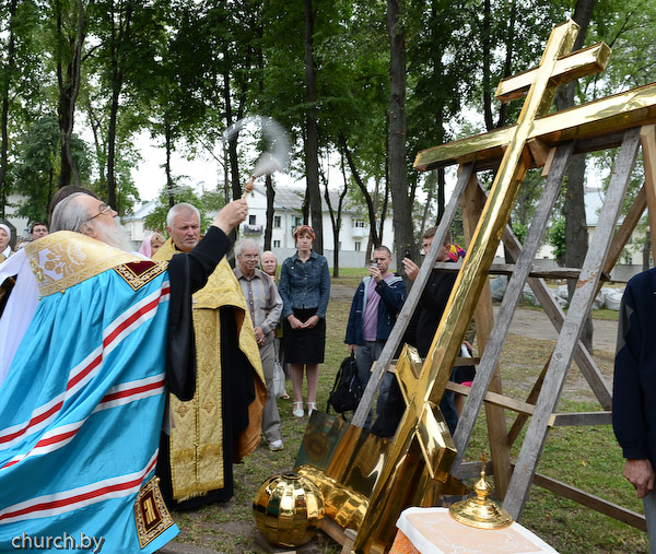 Освящение купола и креста для строящегося минского храма в честь Рождества Предтечи Господня Иоанна (р-н ст. м. Тракторный завод). 11 августа 2012 г.